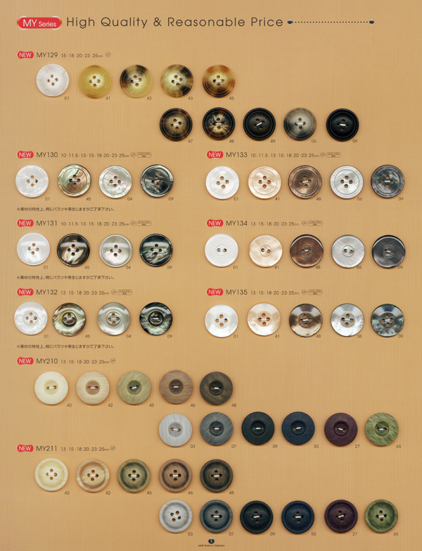 豊かな秋の実りを想像させるような重厚感のあるボタンや、冬の装いに負けないゴージャスなボタンなど、お客様のご希望される商品を以下のカタログよりお探しください。